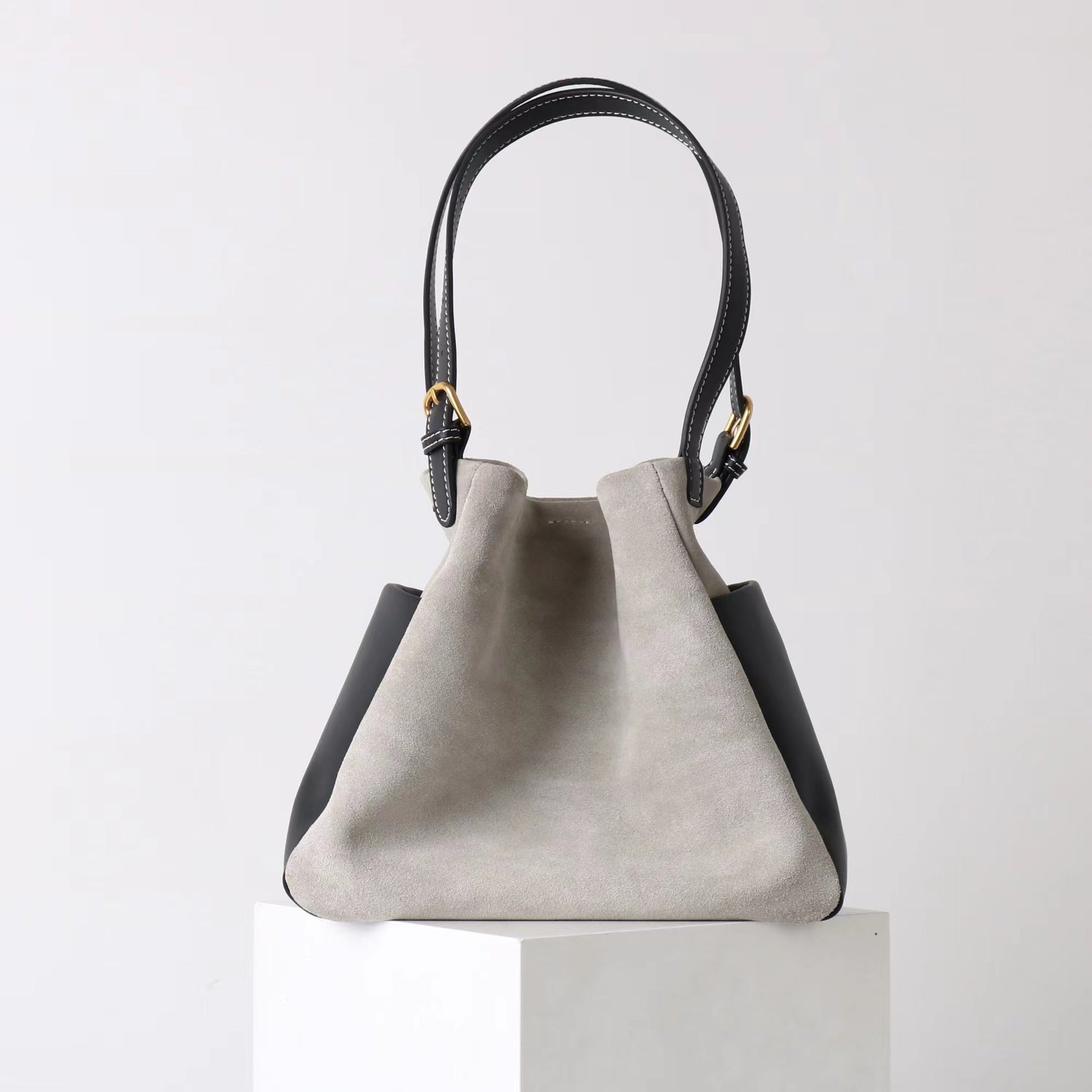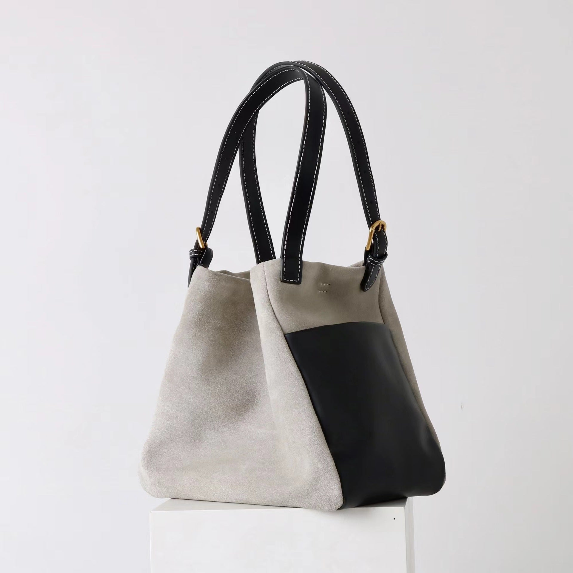 Modern and understated, the Bari Two-Tone Tote blends soft suede with smooth leather panels for a clean, architectural look. Finished with structured handles and subtle gold accents, it offers everyday elegance with a contemporary edge.