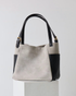 Modern and understated, the Bari Two-Tone Tote blends soft suede with smooth leather panels for a clean, architectural look. Finished with structured handles and subtle gold accents, it offers everyday elegance with a contemporary edge.