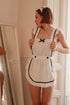 • Two-piece maid costume with apron-style teddy and matching headband