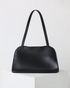 Smooth leather construction with a softly sculpted shape creates a modern, elegant silhouette. Designed to hold structure while maintaining a refined, minimalist look.
